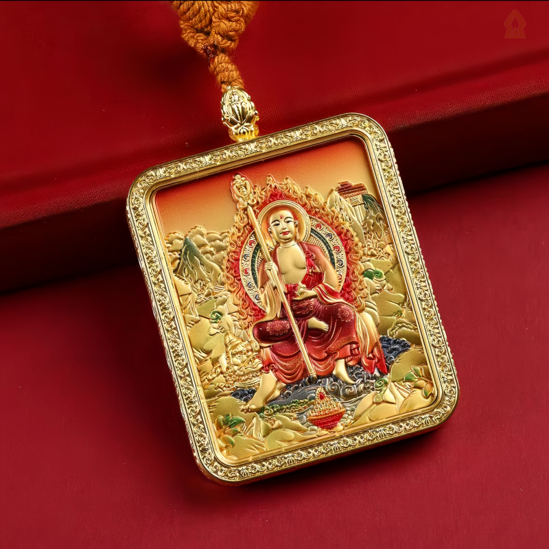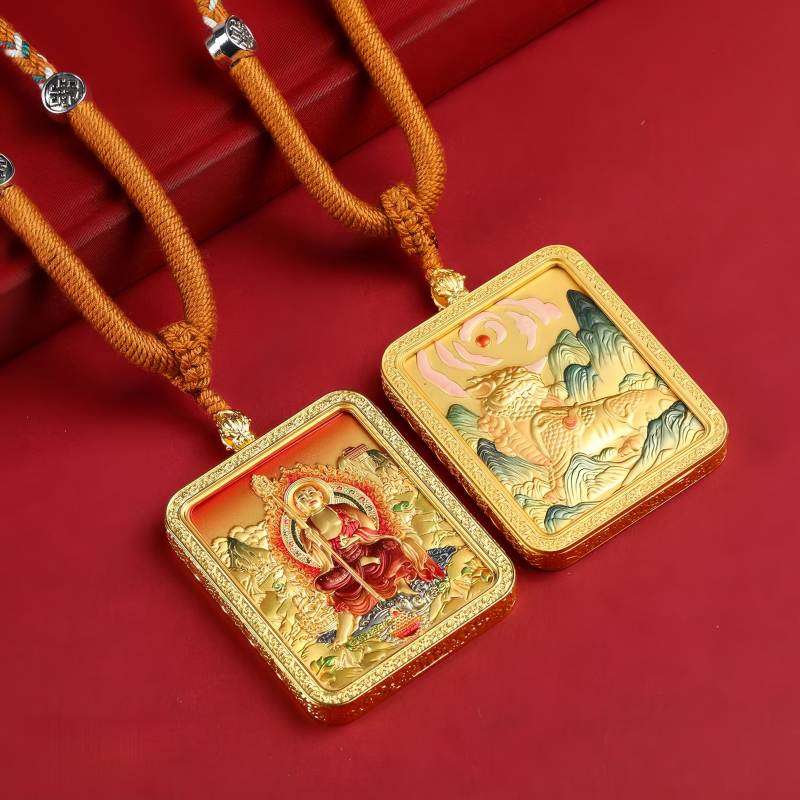 Tibetan Thangka Alloy Double-sided Ksitigarbha Buddha Relief Plate Five Path Wealth God Necklace Thangka Necklace Electroplated Geometric Shape