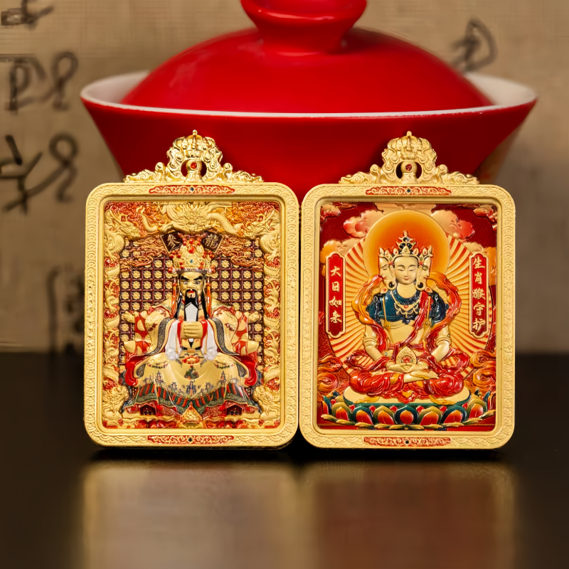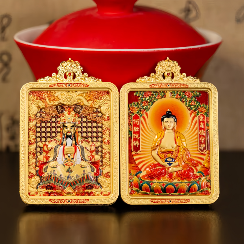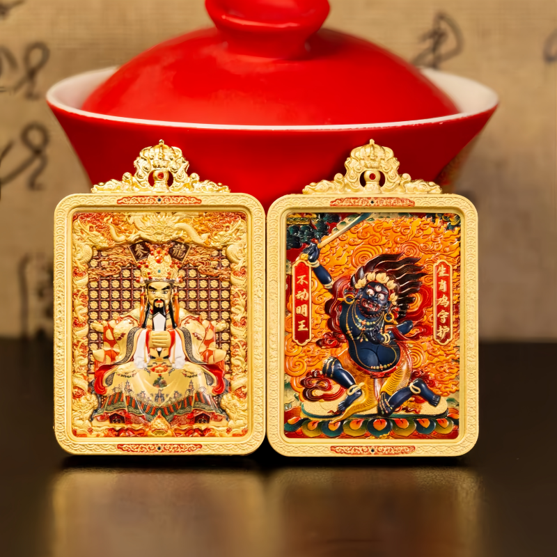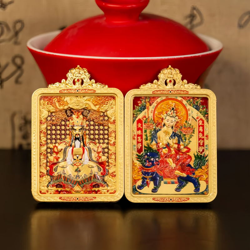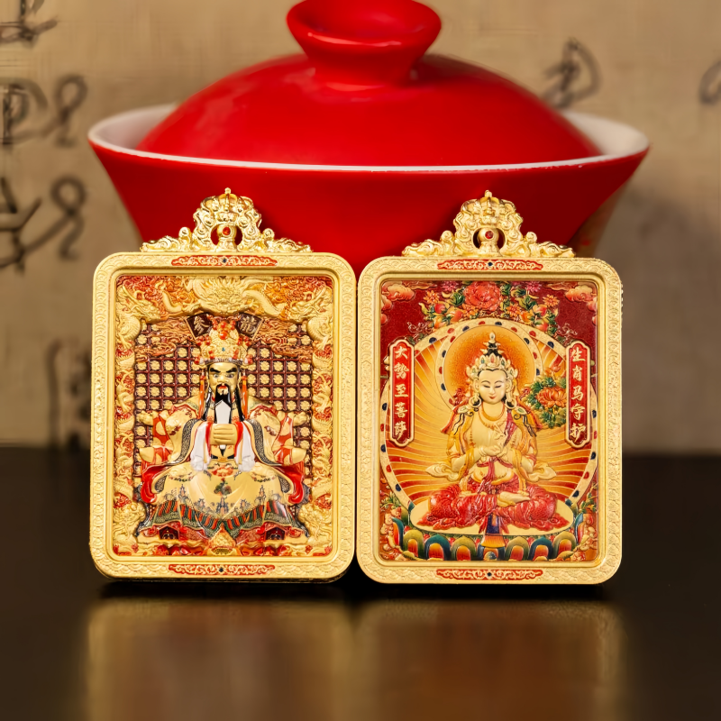 2025 New Style [Wutai Mountain] Exquisitely Carved Double-sided Lord Wu and Manjusri Chinese Style Necklace Pendant, Copper Pendant