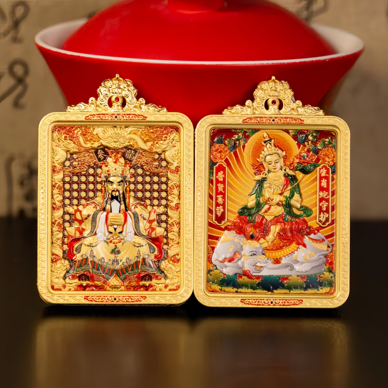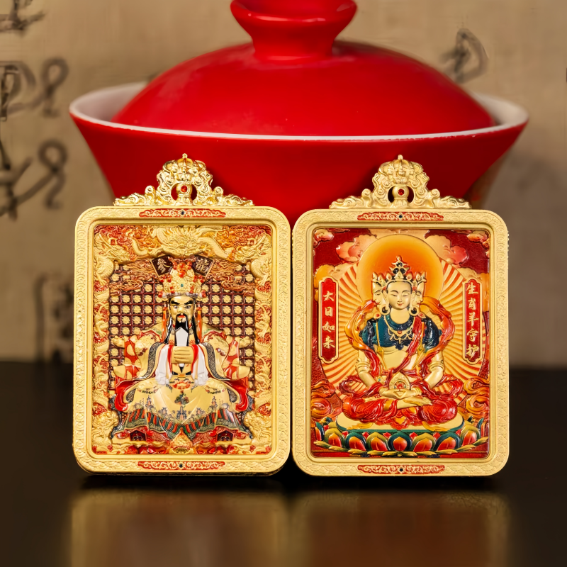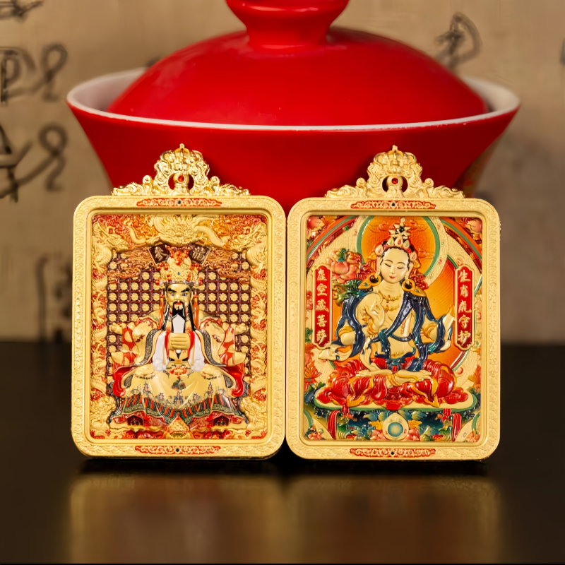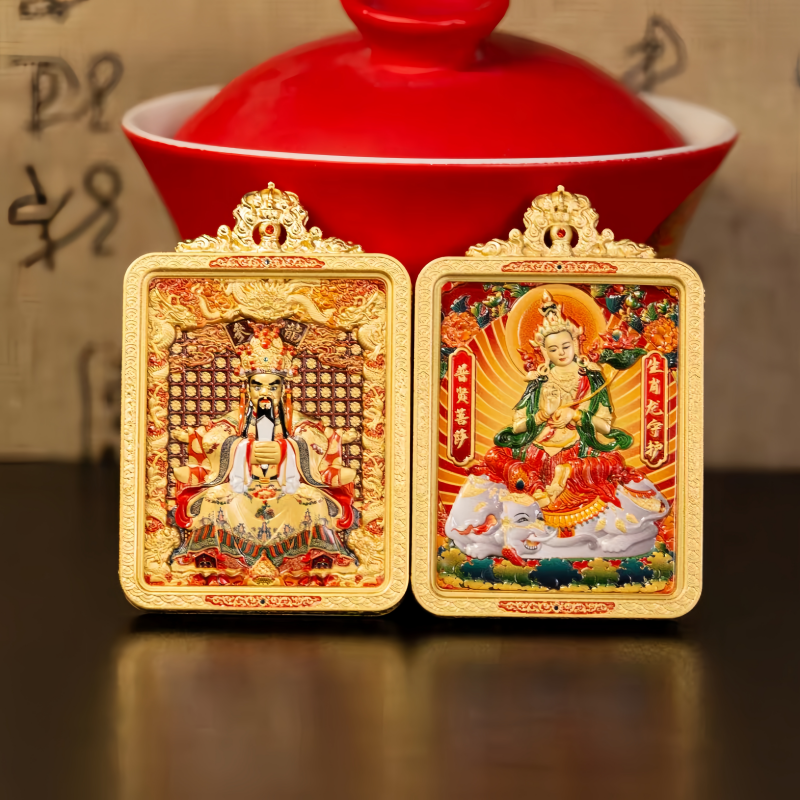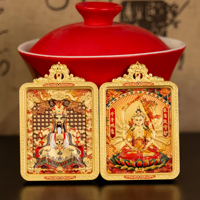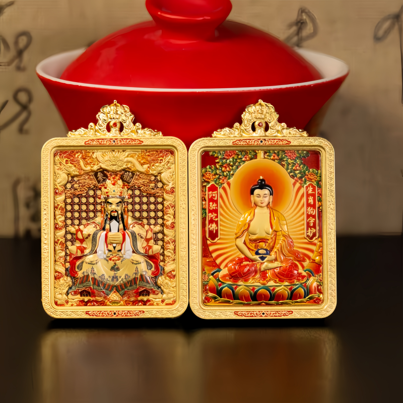 2025 New Style [Wutai Mountain] Exquisitely Carved Double-sided Lord Wu and Manjusri Chinese Style Necklace Pendant, Copper Pendant