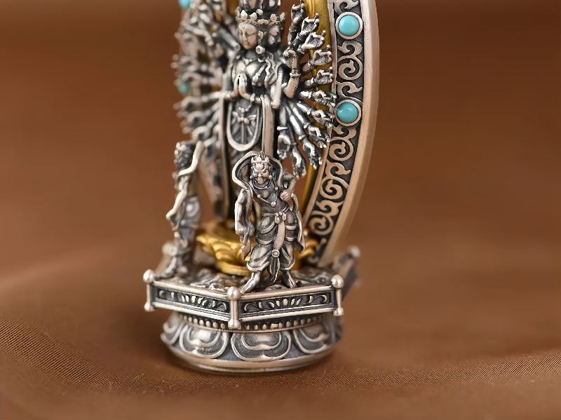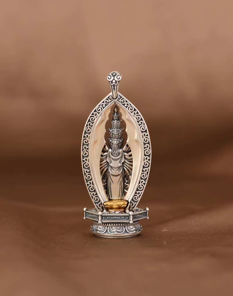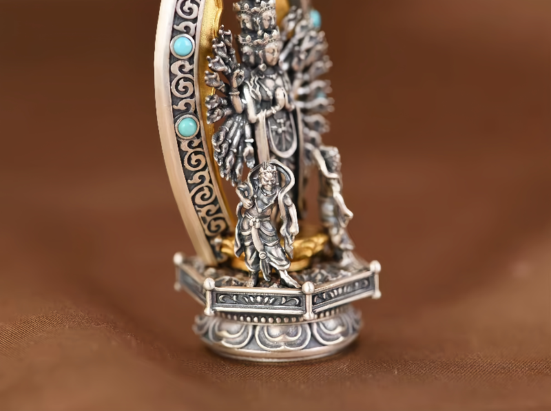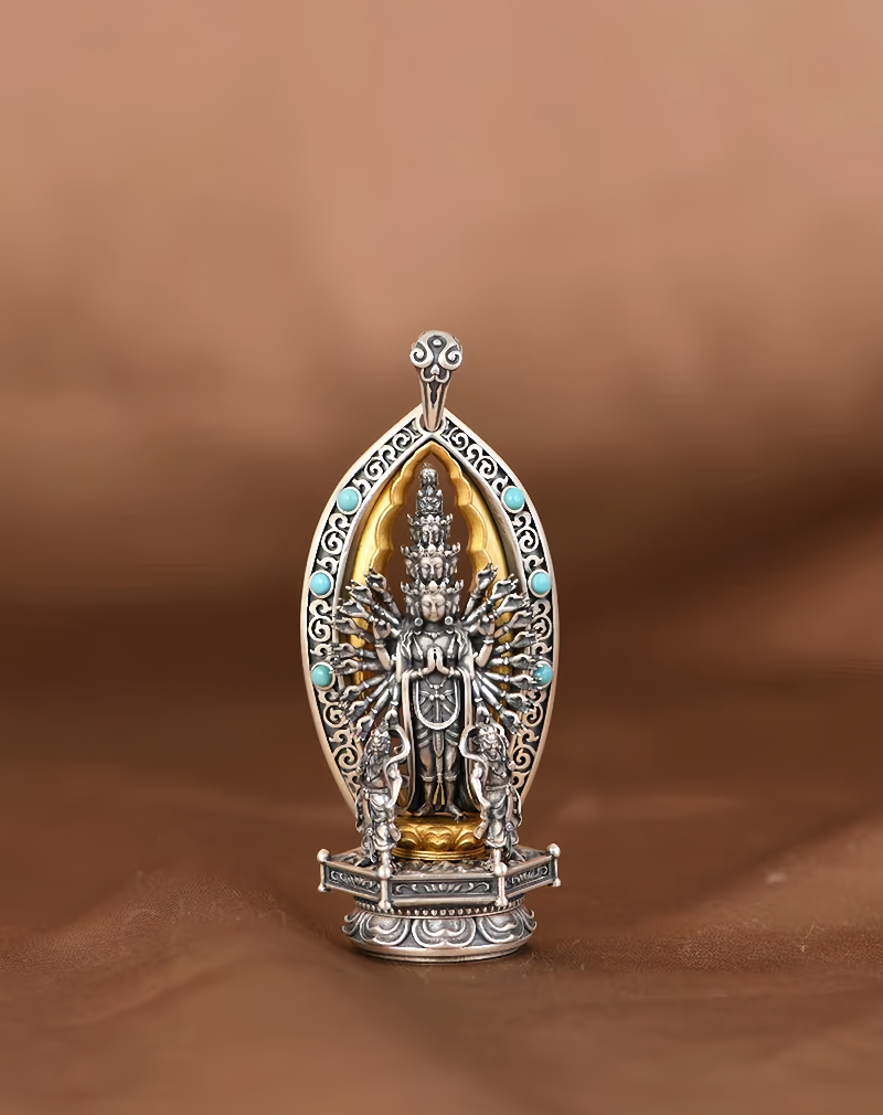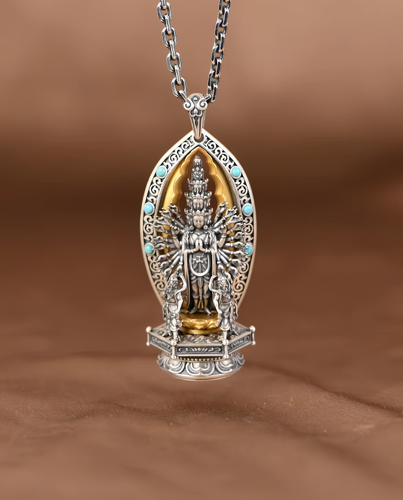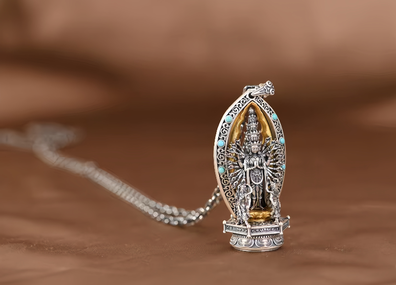 Copper Ceramic Necklace, Thai Thousand-Hand Guanyin Statue Pendant, Retro Craftsmanship, Three-Dimensional Creative Literary and Artistic Collectible, Exquisitely Crafted and Personalized for Men