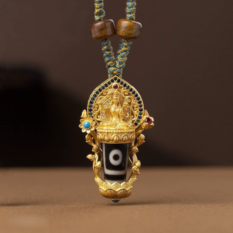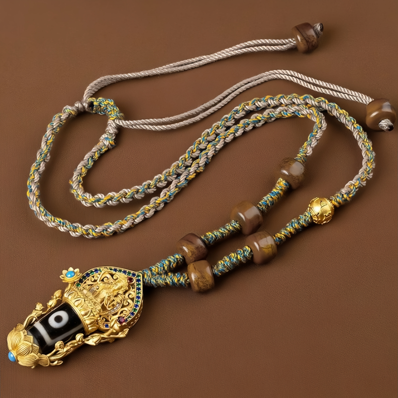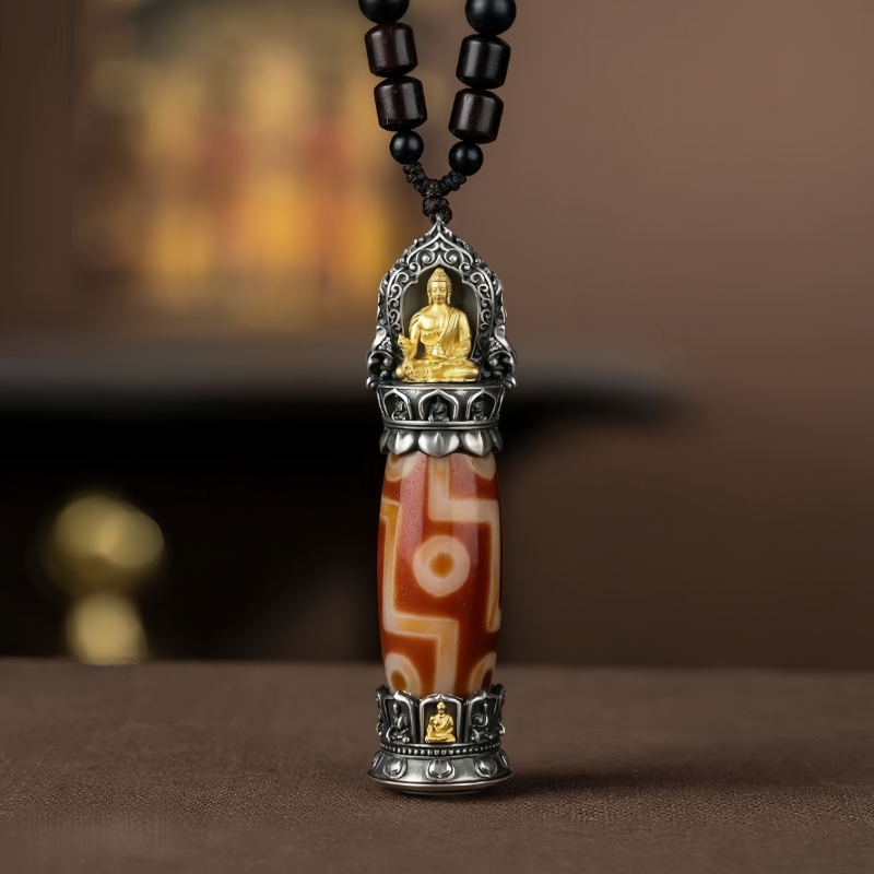 New Chinese-style Nine-hole Pendant with Tibetan Six-Syllable Mantra, Lucky Bead Pendant for Men and Women