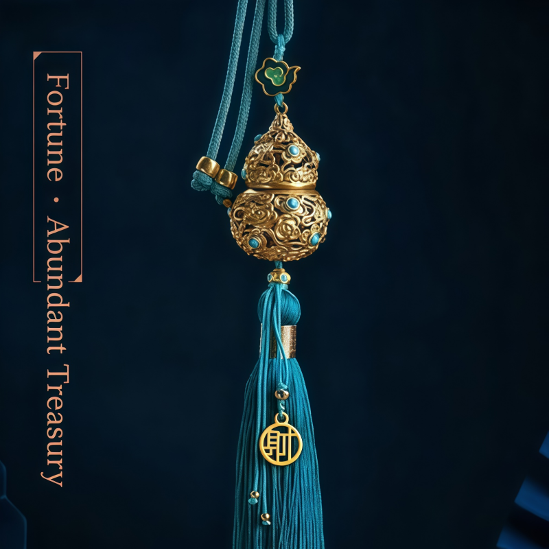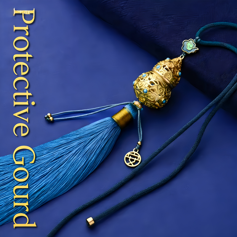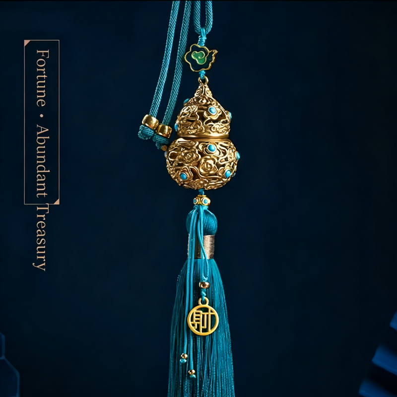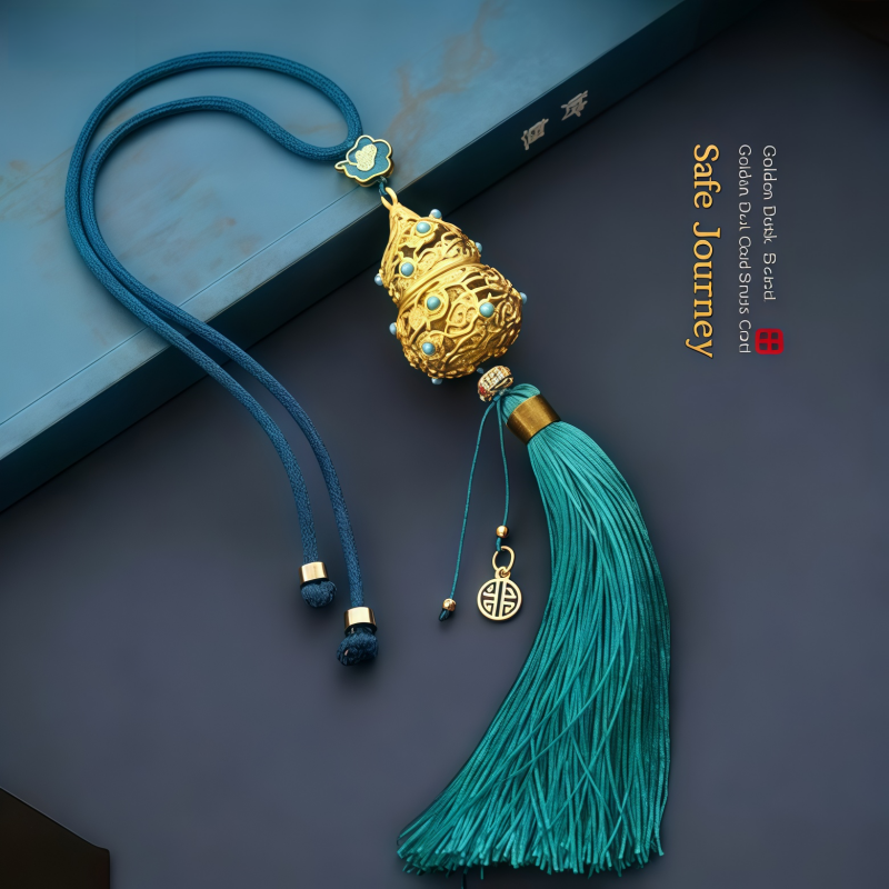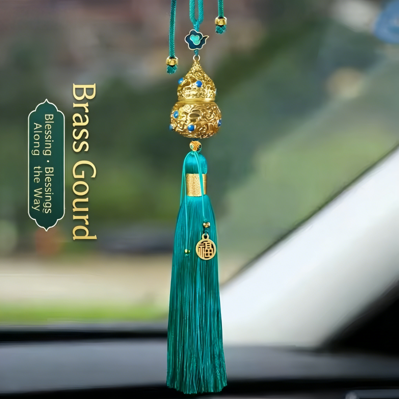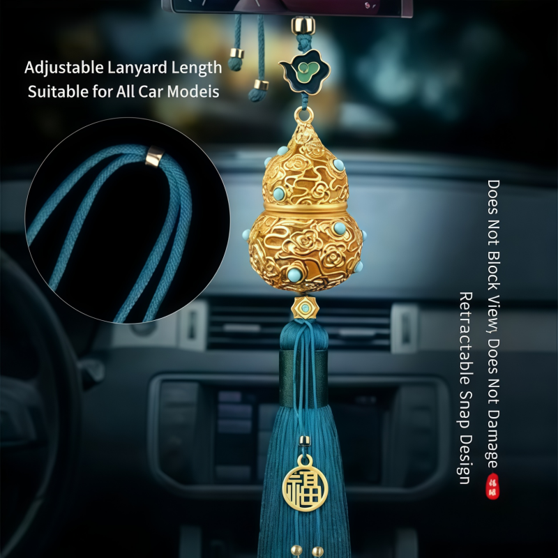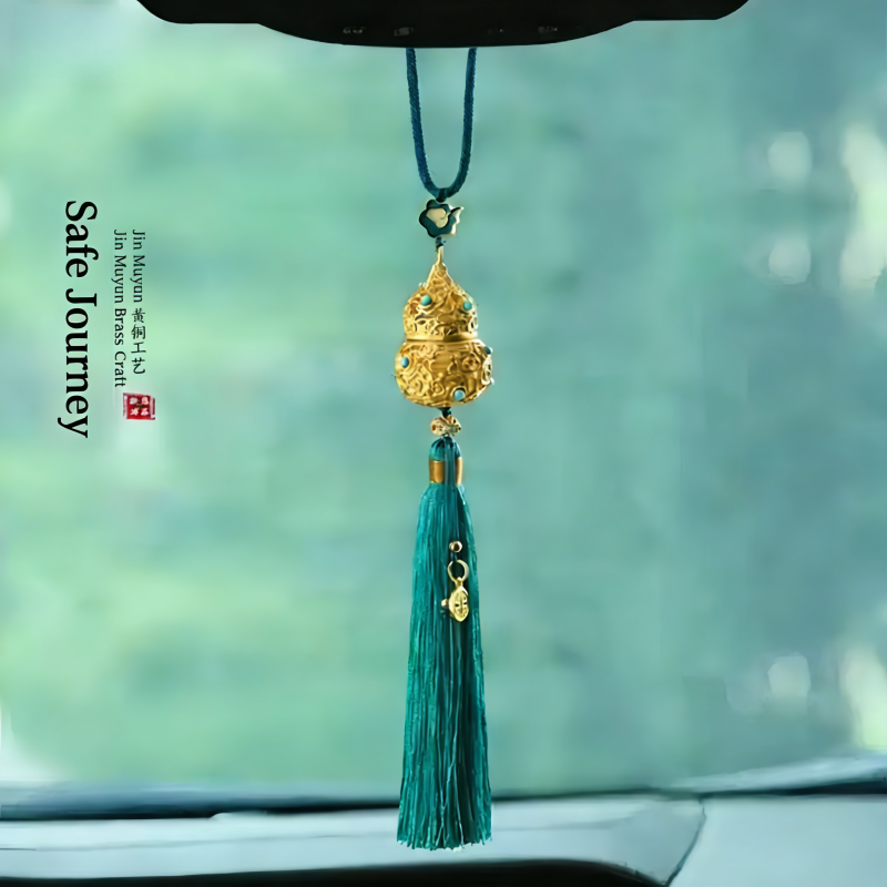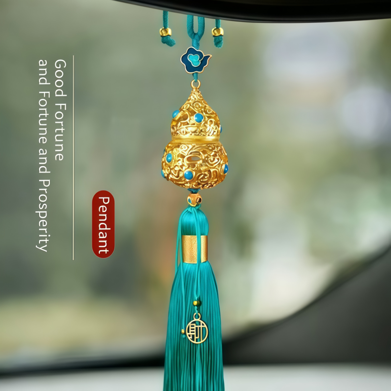 Cinnabar-containing handicraft gourd car pendant, hanging ornament, peace and good fortune hollowed-out tassel rearview mirror ornament, personalized