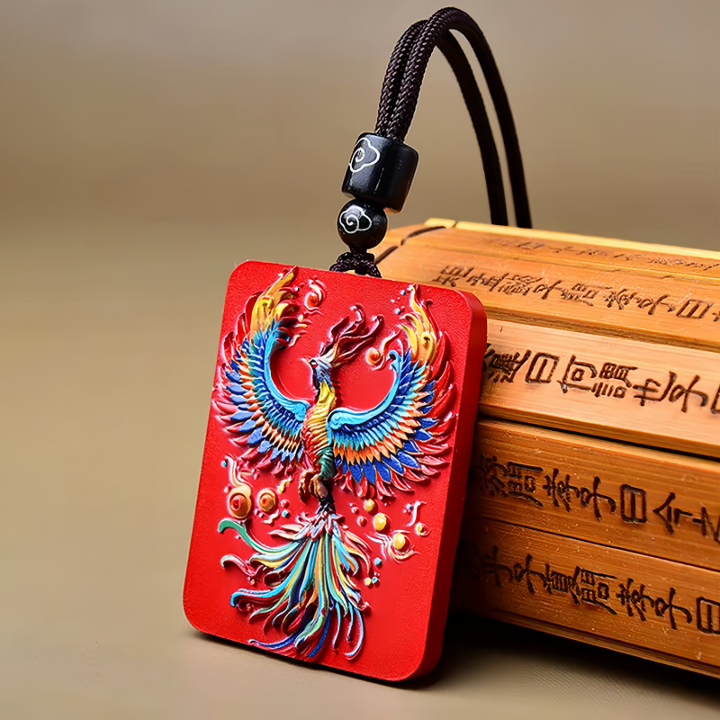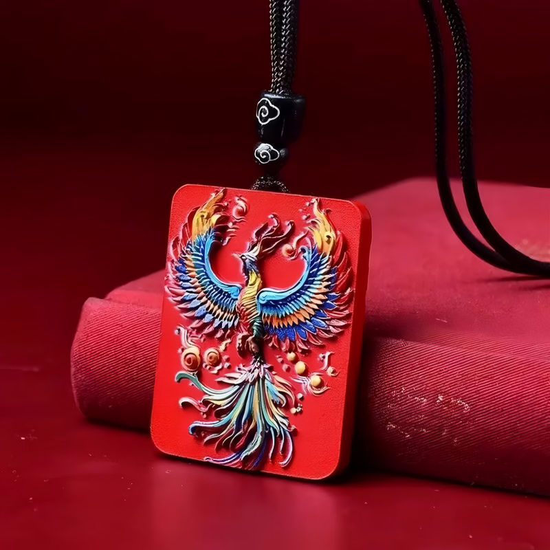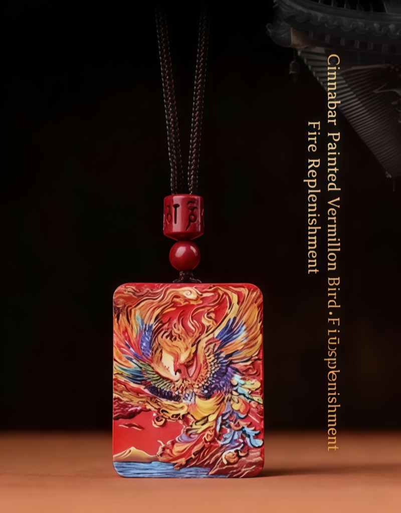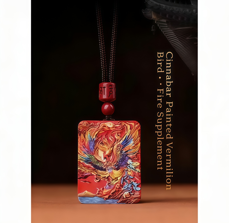 Cinnabar High Content Cinnabar Phoenix Pendant Raw Ore Water Flying Sand Hand-painted Phoenix Nirvana Square Brand Xiang