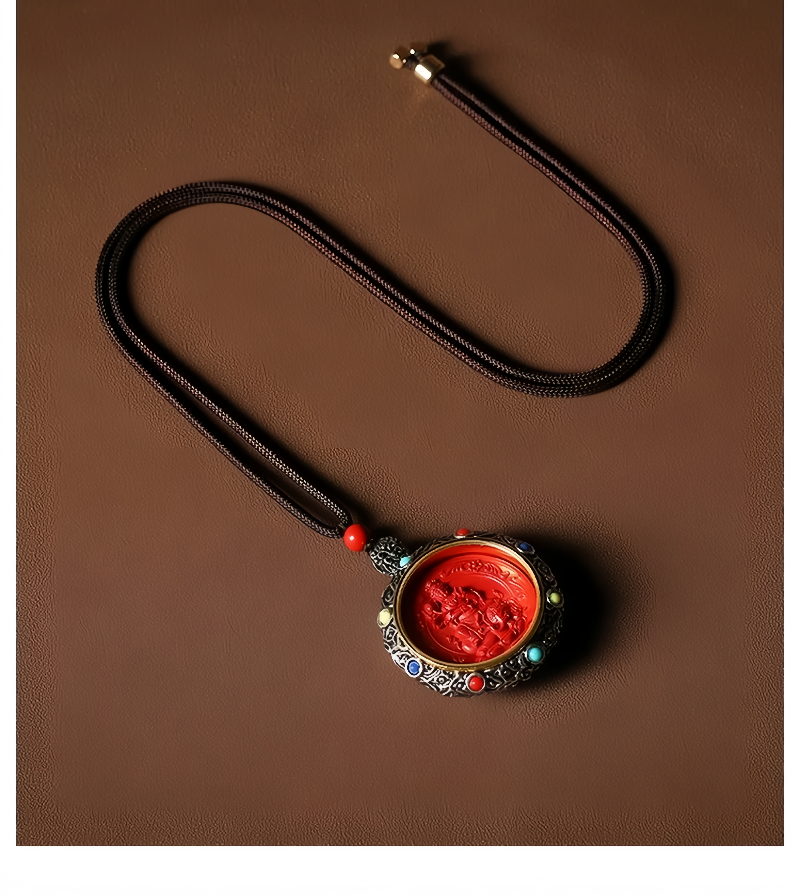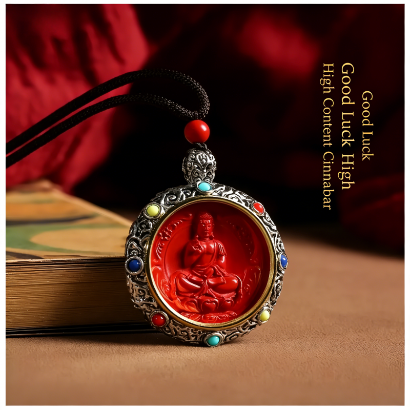Cinnabar Craft Cinnabar Pendant Benmingnian Benmingnian Buddha Necklace Men and Women Zodiac Guardian Amulet Dragon Year